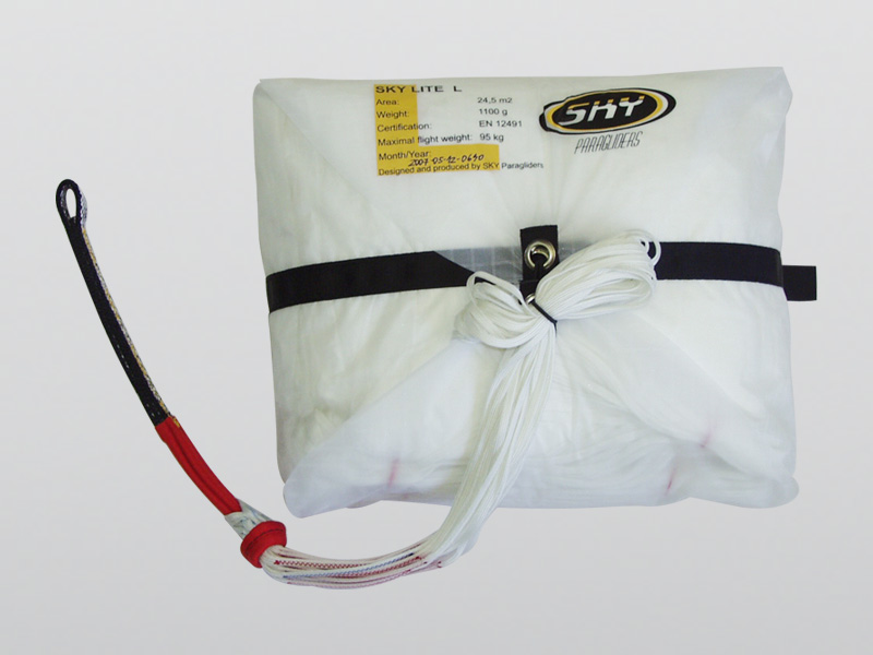 De EN certificering garandeert dat deze noodchute getest is met realistische situaties; daalsnelheid in combinatie met piloot, stabiliteit, openingstijd etc. De loadtest is met minimaal en maximaal gewicht getest in 40 meter vrije val. Sky LITE voldoet aan alle gestelde eisen.